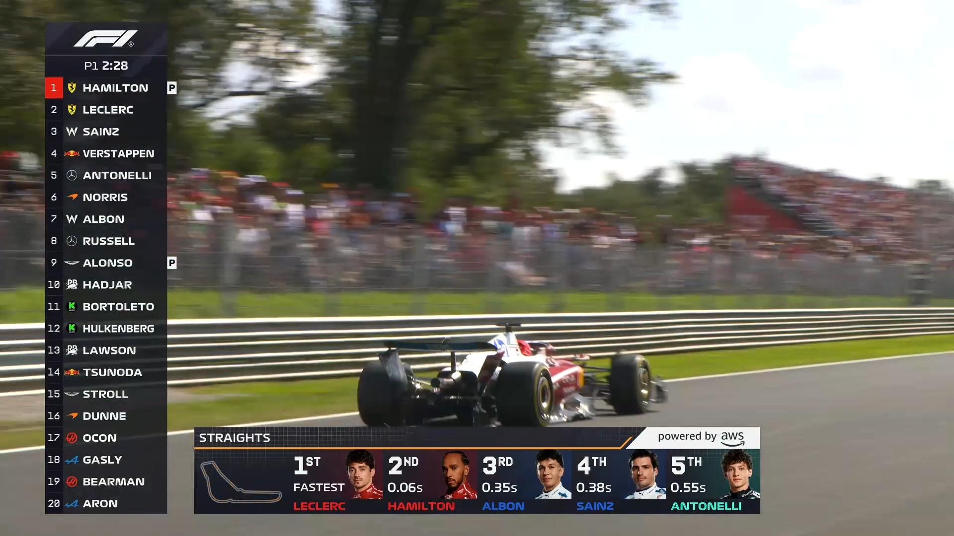 汉密尔顿刷掉勒克莱尔的最快圈,两台法拉利在主场一练排在第1&第2!